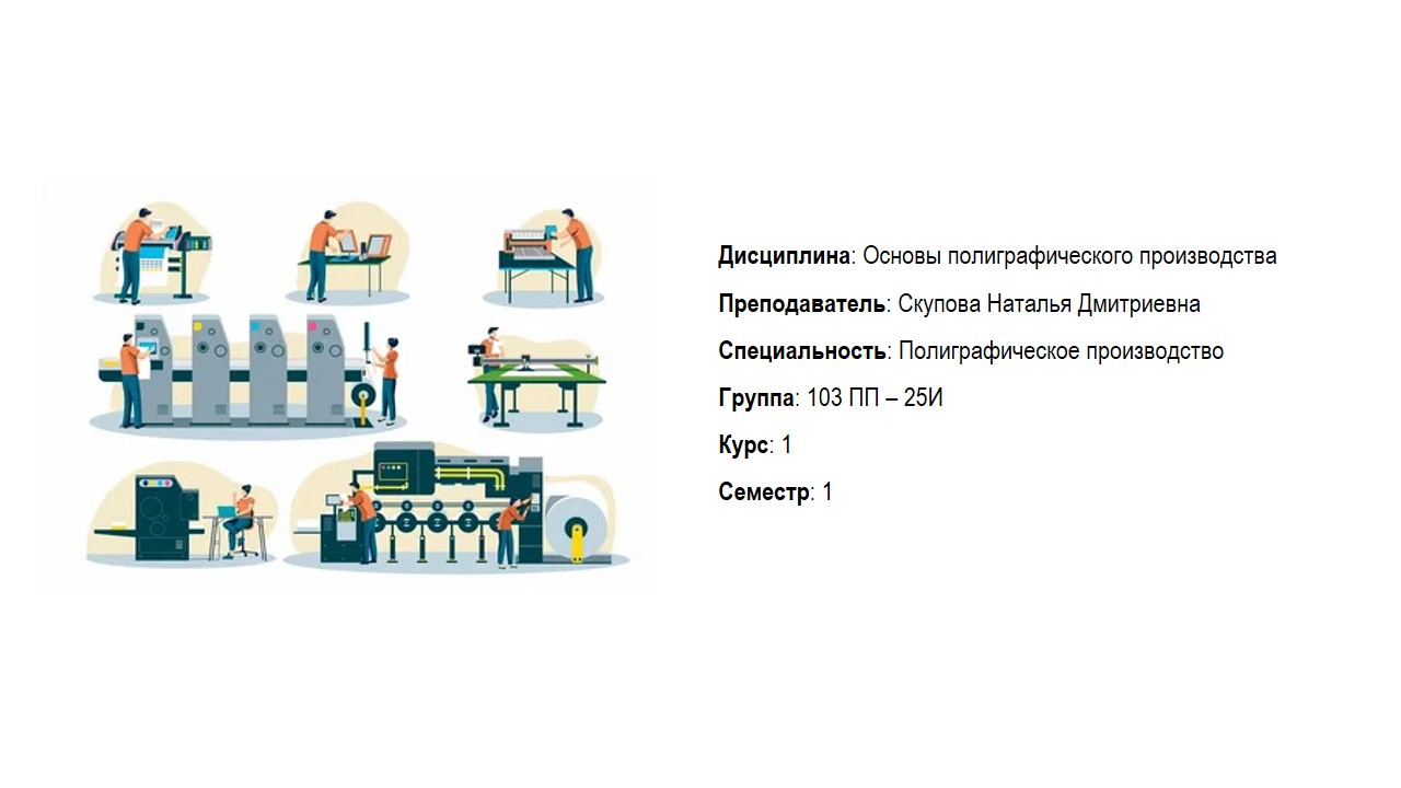 Изучение дисциплины «Основы полиграфического производства» необходимо для представления взаимосвязанных процессов по производству полиграфической продукции, о полиграфическом оборудовании, изучить издательско-полиграфическую терминологию.